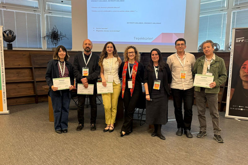 Proje ekibi olarak 27-28 Mayıs 2025 tarihlerinde Eskişehir Uluslararası Film Festivali kapsamında Anadolu Üniversitesi’nde gerçekleştirilen 4. Film Festivalleri Sempozyumuna katıldık. “Günümüz Sinema Seyircisi Araştırmalarını Anlamak” adlı panelde IP 1 kapsamında elde edilen bulgular ışığında Türkiye’de gerçekleştirilen akademik metinler bağlamında günümüz sinema seyirci araştırmalarını tartıştık. Neşe Öztemir Hazan, Sena Öndün Sivas ve Erhan Türküm panele sunumları ile katıldılar.